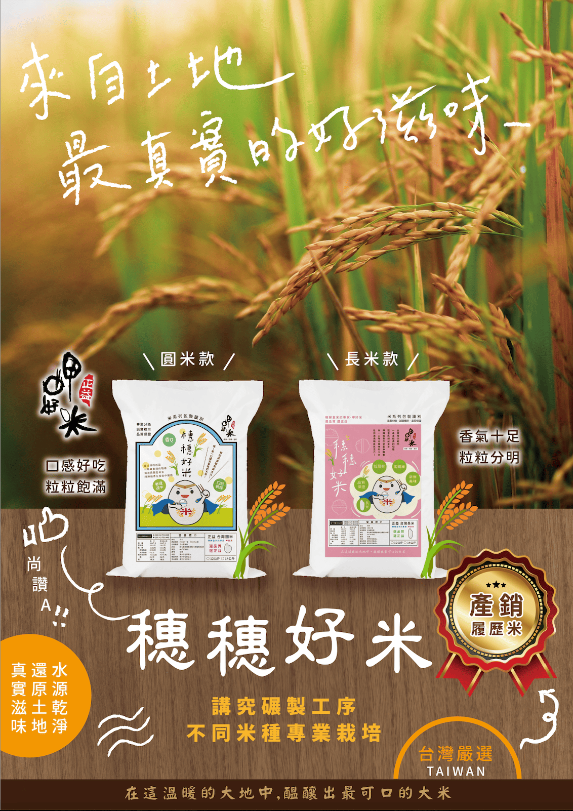 - 專種:農民種植的稻米擁有獨特的外觀,無法與其他品種混合販售,這樣的獨特性保證了產品的專屬性和市場競爭力。